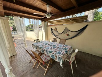 Villetta al piano terra con giardino, 6 posti letto nelle stanze. Giardino con portico per mangiare fuori, soggiorno, angolo cottura, 2 camere da letto e bagno.